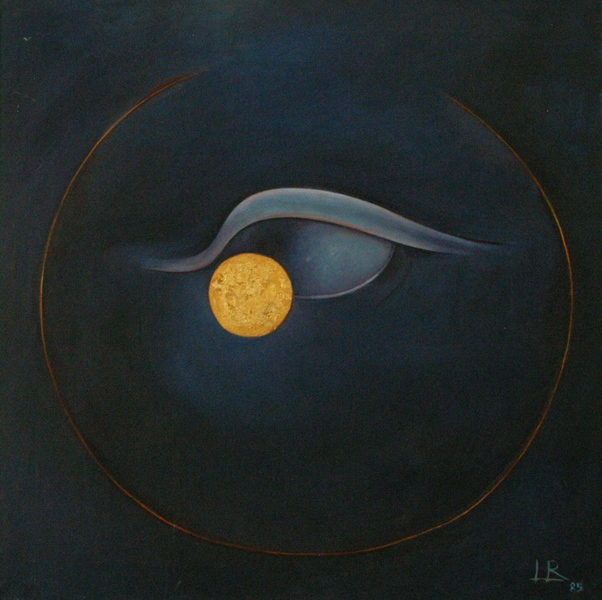 Per Luisa Romano l’esperienza della pittura è un momento importante nella ricerca di una dimensione più vera di sé: un atto di conoscenza consumato lungo la china di un pensiero profondo, in solitudine, per ritrovare il comune cammino con gli altri e il mondo. Pervenire alla pittura è possibile soltanto come raggiungimento di uno stato di concentrazione che sposti la nostra sensibilità dall’ordine della quotidianità al livello della vita interiore. Un lungo viaggio verso la zona d’ombra, nell’attesa di una rivelazione che divenga il proprio messaggio agli altri. A cominciare dall’origine, dove ancora non è possibile parlare della cultura dell’uomo. All’origine ogni parola e ogni segno era un punto d’incontro di energie in cui avveniva la trasformazione della realtà in modulazioni della vita umana e in figurazioni l’espressione vivente dell’anima. Attraverso il linguaggio l’uomo non solo prese possesso dell’universo, ma fece di più: scoprì una nuova dimensione, scoprì in se stesso un mondo aperto sulla prospettiva di una più alta forma di vita, al di la dello stato attuale dell’umanità quanto la coscienza dell’uomo civile è al di la dell’animale. Il poeta veggente fu dominato dalla visione e dalla parola: l’occhio dell’uomo e di Dio, divenne il simbolo di questa realtà. Così Luisa Romano indaga il mistero dell’occhio, strumento di oscura magia e luce dell’anima, oracolo che non lascia trasparire la soluzione dell’enigma. E ferma l’immagine dell’occhio in una fredda luce di notti nere e lune avvelenate, in meridiani splendori, in impenetrabili apparenze: immobile in una struttura di cristallo rinvia ad una dimensione che non è più anatomia ma segreta domanda e inquieta ricerca su la segreta realtà dell’anima: presentimento di verità in quel perenne esercizio dell’arte che è esorcismo nei confronti della morte. E il problema della sua pittura diventa come trasformare la solitudine, quest’amaro seme di morte, in sublime certezza del contatto; nell’unità possibile, non già fisica ma di comprensione, col mistero dell’universo; in capacità di elevazione e di contemplazione di sfere celesti e astrali visioni. La magia di occhi che non sono più occhi. Come in balia di un sortilegio, quell’occhio ci attrae, ed è come sfiorare l’abisso. L’occhio del serpente, l’occhio che uccide, l’occhio che tutto vede sempre l’occhio e il suo potere di magia e di esorcismo.