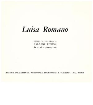 In Luisa Romano l’immaginazione è tanto più apprezzabile in quanto, per offrircela, essa rinuncia agli astuti mezzi tecnici spettacolari e procede con esemplare equilibrio di colore e di tratto. Molte opere sono quasi monocromatiche, ma siccome il valore del contenuto supera l’interesse della tecnica usata, non ne cerchiamo le ragioni. Importantissimo, invece, osservare con quanta sicurezza l’Artista limiti le sue tele in “tagli” singolari, a volte drastici: infatti tutto ciò che resta fuori dell’inquadratura, lo si sente con estrema facilità. E’ proprio la forma della tela che denuncia un senso istintivo delle proporzioni, prevalente in anticipo sull’opera stessa.